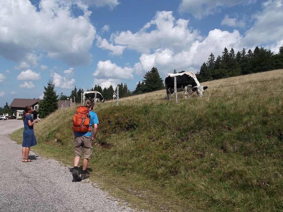 Prendre à gauche, et on débouche de suite sur les chaumes du Grand Ventron, avec l’auberge un poil plus haut. Il faut donc encore une fois partir sur la gauche, jusqu’après l’auberge « La chaume du Grand Ventron ».