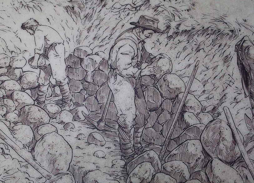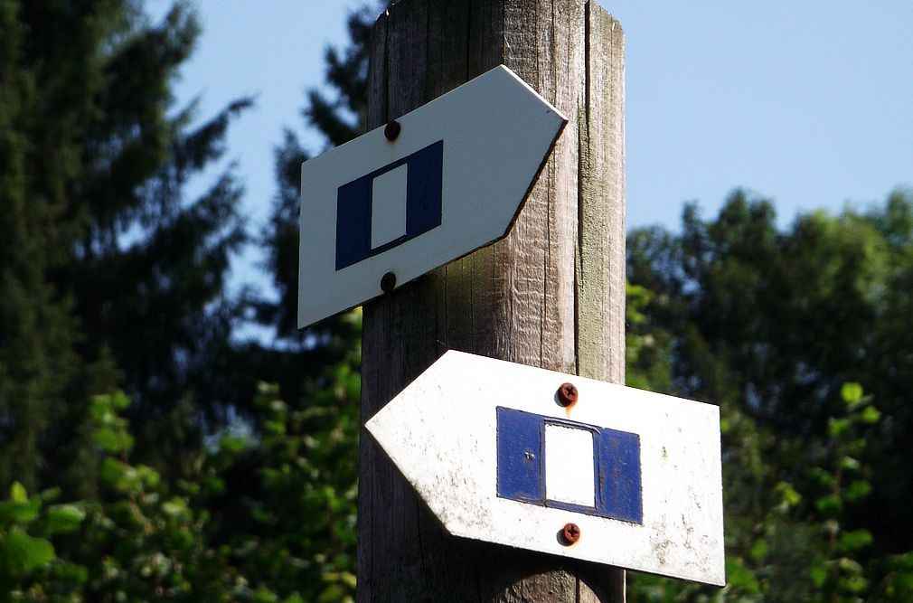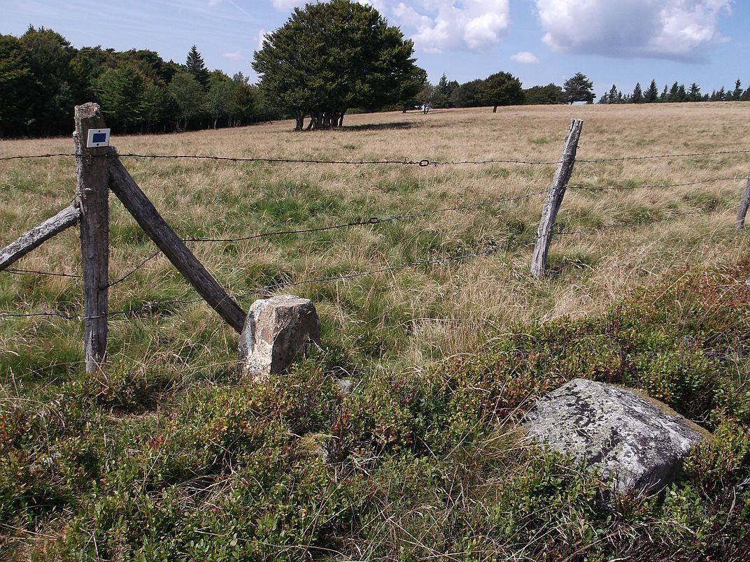 On a rejoint le GR 531, « rectangle bleu », qu’on suivra un moment. Prendre la direction Wintergés et col d’Oderen (le panneau n'est plus très bien orienté). Il y a plusieurs traces, mais il faut suivre la clôture et le muret en pierres, qui est en fait l’ancienne frontière entre la France et l’Empire allemand, entre 1871 et 1918.