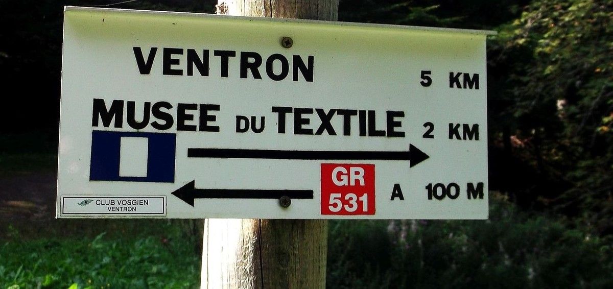 Le chemin herbeux fait un petit crochet à gauche, et on arrive sur une petite route : prendre à droite, direction « Musée textile ». On longe la route, et on arrive au parking du musée (4) : juste avant le parking, prendre la petite route qui monte vers la droite. Un virage en lacet, et au panneau « stop » on traverse la route qui descend du col d’Oderen, pour continuer en face le Chemin du Gros Pré.
