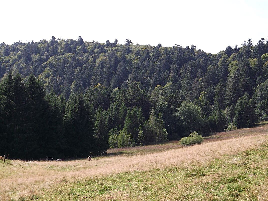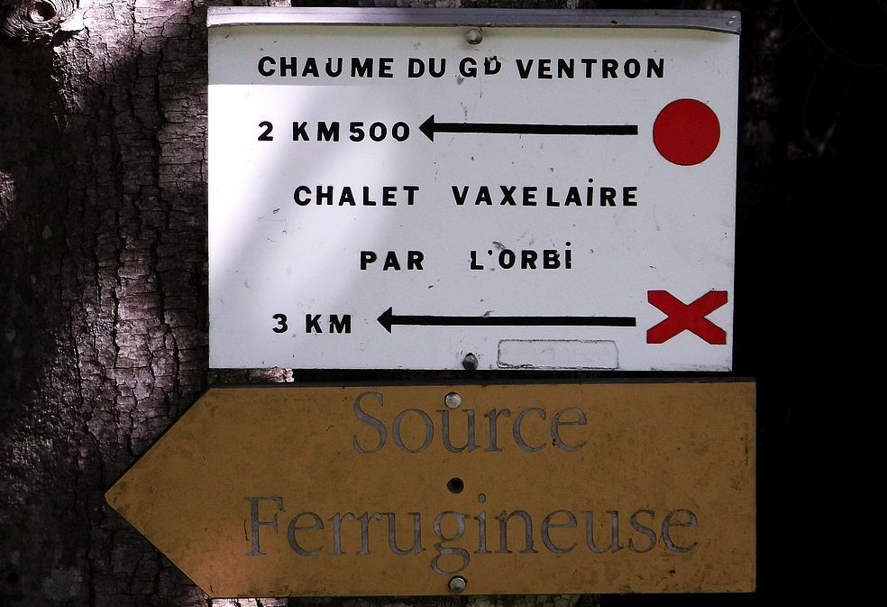 Pour la suite : prendre, en face de la fontaine de bois, l’itinéraire vers le Grand Ventron, repéré par un « disque rouge », et nous passerons par une source ferrugineuse.