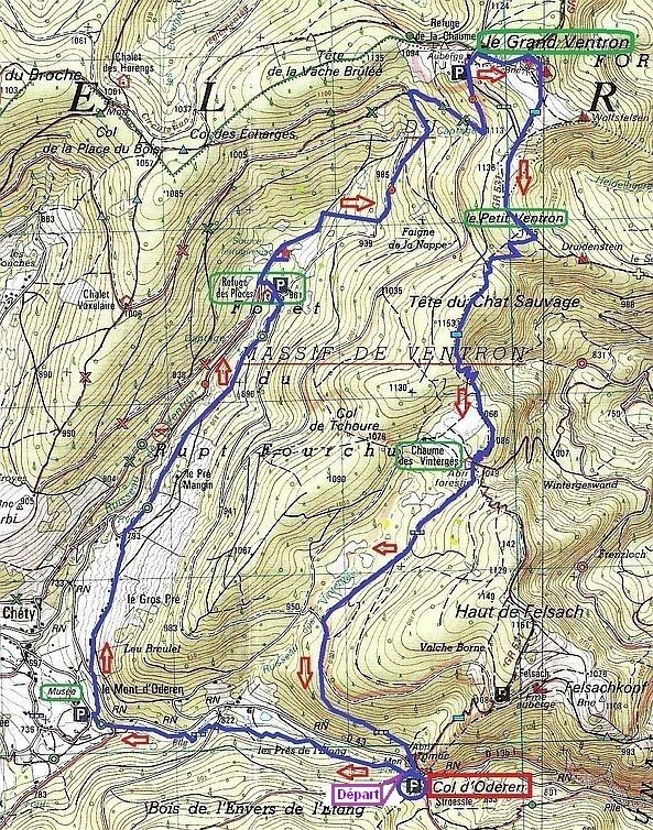 Les Vosges vosgiennes, comme j’aime à les appeler, offrent beaucoup de merveilles aux randonneurs, surtout ceux qui viennent d’Alsace. Quelle beauté, quelle propreté, quelle douceur de vivre en harmonie avec la nature ! Partout, on va de surprise en bonheur. Exemple depuis le col d’Oderen, au-dessus de Kruth : nous partons pour un tour du Grand Ventron peu banal. Faisable en un après-midi, nous lui consacrerons plutôt toute une journée, afin de profiter pleinement des lieux.